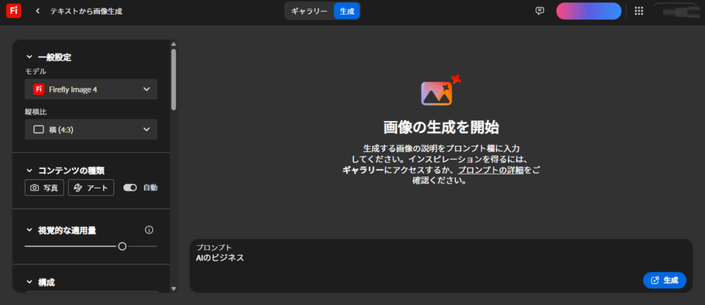 Adobe Fireflyは、プロンプトを入力するだけで高品質な画像を生成できるAIです。