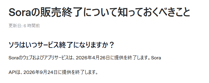 (引用:https://help.openai.com/en/articles/20001152-what-to-know-about-the-sora-discontinuation